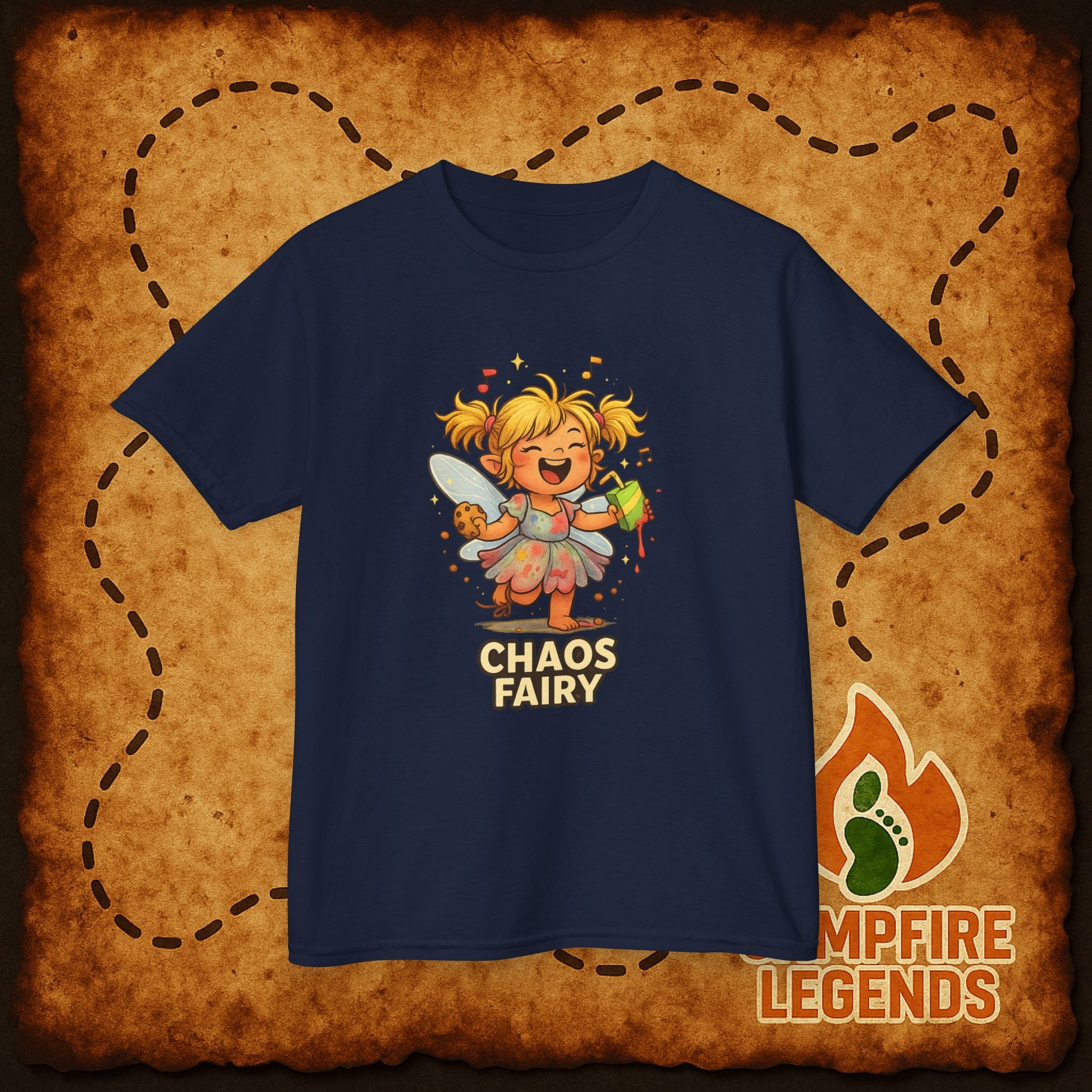 Little ones who love to make joyful messes will light up in this soft, midweight tee. A bright, mischievous fairy bursts from the center—sprinkles of paint and musical notes trailing behind her as she dances with a paintbrush and a mug. The image reads “CHAOS FAIRY,” capturing the playful energy of kids who turn every day into a creative adventure. The classic crew neckline and comfortable, slightly roomy fit make it easy for active play, layering, or lounging. Ethically grown US cotton gives a breathable, durable feel that stands up to washes while staying gentle on sensitive skin. This tee fits into backyard adventures, art-time mayhem, and casual family gatherings, adding a cheerful touch that kids and parents both appreciate.