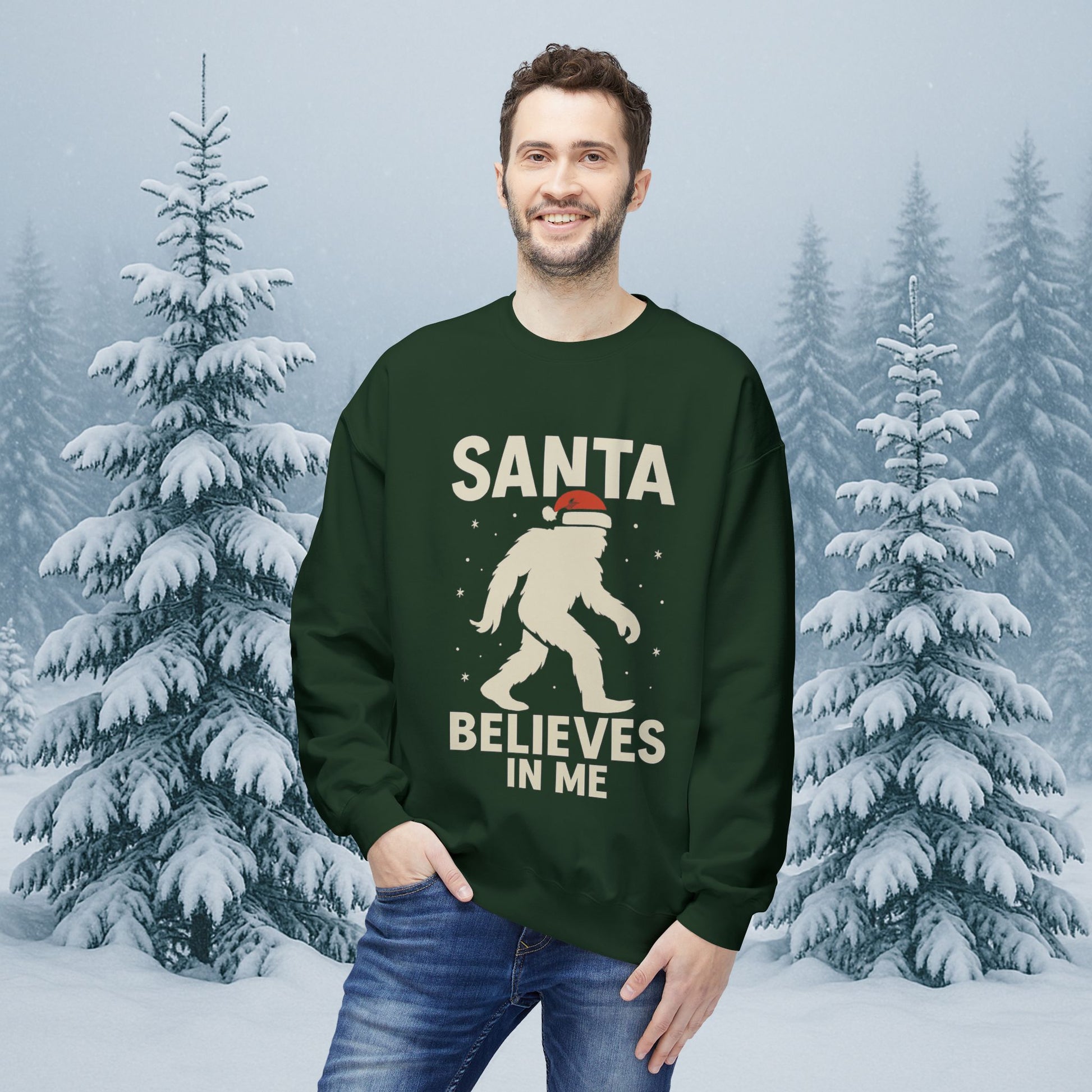 Santa Believes In Me Crewneck Sweatshirt — Funny Sasquatch Christmas Holiday Sweatshirt